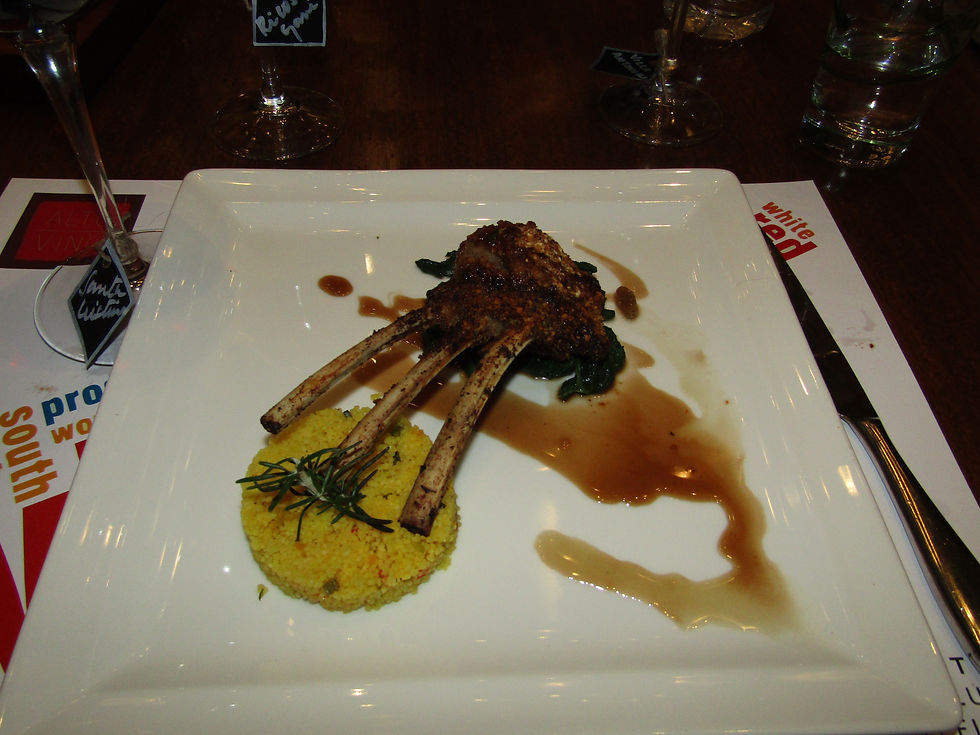 The Secondi or the Mains arrived next and I had opted for the Herb Crusted Prime Lamb Rack with Couscous and Sautéed Vegetables in a Jus Reduction-Costoletta D’agnello . When paired with the medium-bodied-Santa Cristina, a Sangiovese from the house of Antinori, cherry red in colour the lamb just melt in your mouth. The fruity flavour of the wine complimented the succulence of the meat very well and I took the liberty of indulging in a couple of extra pours. The result-well, what can you expect? I tend to get chatty with the right Red and this was no exception.